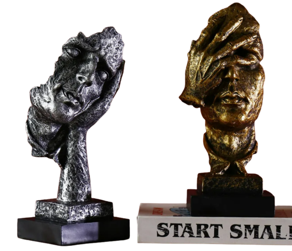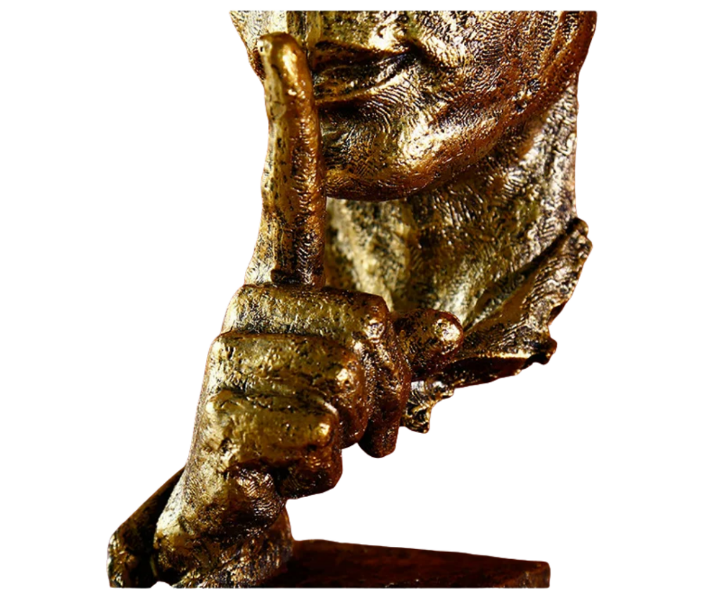 Inspirada na força do gesto e na linguagem do silêncio, Silêncio é Ouro representa introspecção, consciência e autenticidade. Seu conceito conversa com espaços modernos, criativos e minimalistas, tornando-se um elemento que comunica sem precisar de palavras.